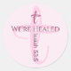 This sticker features a light pink cross with a healing Bible verse. Text is customisable.