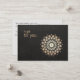 Vector illustration of gold leaf mandala inspired motif on digital image of black linen background. Original illustration by Maura Reed. A versatile elegant coupon card appropriate for many different holistic and alternative medicine professions.