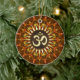 Golden OM Sanskrit symbol, customisable ceramic ornament in organic fractals geometric hexagon pattern with fully customisable text area on one side. Makes a great business to customer gift, or Best student award, personalised gift idea ~ keepsake gift ~ decorate and hang this positive happy energy ornament in your home, Yoga studio, bedroom, hang this ornament in your car, van or office!