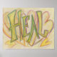 The word "Heal" is pale lime green and yellow in color. Behind the word is soft pastel pink and yellow hearts. Inspirational artwork by Laurel Latto for DonnaBellas Angels.