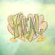 The word "Heal" is pale lime green and yellow in colour. Behind the word is soft pastel pink and yellow hearts. Inspirational artwork by Laurel Latto for DonnaBellas Angels.