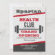 A health club invitation to a private party or for a grand opening. The red, black and off-white design is trendy and eye-catching and features a bar bell. (FP)