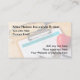 This modern health insurance theme custom business card design is created with a lightly printed background displaying a clipboard, heart symbol, medical stethoscope graphic and blank insurance form.