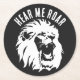Roaring lion face simple black and white graphic design in the style of a stencil artwork, with the text Hear Me Roar.