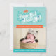 This birth announcement features a hand-lettered "Hear Ye! Hear Ye!" in gothic, blackletter style with matching blue diamond backer.