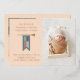 Herald trumpet with flag, calligraphic letters for mediaeval themed birth announcement. Add more text or photos to the back if desired. Real foil text and accents, choose from gold, silver or rose gold. Foil will print thicker than shown on screen.