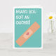 Send a get well soon greeting with this fun "Heard you got an ouchie" card. The design features a solitary band-aid with a little heart and sun typography wording.