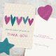 These heartfelt 4" x 5.6" thank you cards feature whimsical decorative hearts in magenta, white and teal on a mocha background. The card front EDITABLE greeting is, "From the bottom of our hearts, thank you." The EDITABLE message inside is, "It's people like you that make this a better world." The is a placeholder for you to add your name(s)