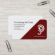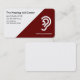 Modern hearing aid center business cards with graphic of an ear and modern template layout in a sleek modern design you can customize online. Designed with an Audiologist in mind working at a hearing clinic or hearing aids store for your staff.