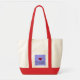 It has sturdy handles and is a canvas tote. It is just what I wanted for my neice to take stuff to the beach on their honeymoon!! The printing was just as pictured.