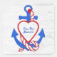 Red and blue heart nautical anchor with rope graphic on rustic whitewashed wood background.