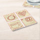 Heart and Ring Woodblock Drawings Square Paper Coaster