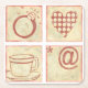 These red woodblock drawings by Chariklia Zarris show a ring, a heart, a cup and the symbol for "at" and an asterisk. An eclectic group of objects to place together in a work but captivating nonetheless. Purchase your copy of this wonderful piece today!