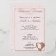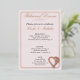 This is a 5' x 7" rehearsal dinner invitation, shown in pale blush pink, with rose gold foil accents. This is real foil trim, available in gold, silver, and rose gold. The foil accents include the rehearsal dinner banner, bride and groom's name, a whimsical heart a heart and roses design, and a foil outline on the front. the reverse includes the bride and groom's name and heart artwork.