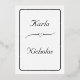 This is a 5' x 7" rehearsal dinner invitation, shown in elegant white, with gold foil accents. This is real foil trim, available in gold, silver, and rose gold. The foil accents include the rehearsal dinner banner, bride and groom's name, a whimsical heart a heart and roses design, and a foil outline on the front. the reverse includes the bride and groom's name and heart artwork.