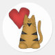 A big red heart and a striped orange and black cat are featured on these cute cat lover T-shirts, mugs, stickers, magnets, and more.