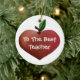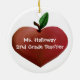 Sweet round ceramic ornament with graphic artwork of a heart shaped apple, on both sides. White whimsical text reads, To the Best Teacher, on the front, and personalised, with teachers name and additional text, on the back. Personalise the text to read anything you want. Great Christmas tree ornament any teacher will enjoy.