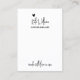 A modern, minimalist black and white stylish jewellery earring display with elegant heart and modern simple hand lettering style typography , all text and backgrounds colours are customisable, add your social media, website and email on the backside.