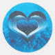 A beautiful, single large heart in shades of aqua, sky, royal, navy and cobalt blue is surrounded by a grunge, distressed background in blacks and vibrant blues.