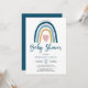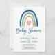Heart Blue Muted Tones Boho Rainbow Baby Shower Invitation