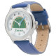 Great price point!  Grandson loved his "own name" watch.  Great for teaching time! Crisp clear picture! Sturdy leather band.  Totally well made product.