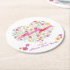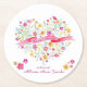 Pretty wedding bridal shower paper coasters ideal for honouring the bride to be. Colourful flowers in a heart shaped spray with ribbon in pink, green, blue, orange and yellow floral wedding bridal shower coaster design. Edit these colourful coasters with your honouring bride to be name. Unique design and watercolor art by Sarah Trett.