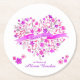 Pretty wedding bridal shower paper coasters ideal for honouring the bride to be. Colourful flowers in a heart shaped spray with ribbon in purple, pink, green, blue, lilac and grey floral wedding bridal shower coaster design. Edit these colourful coasters with your honouring bride to be name. Unique design and watercolor art by Sarah Trett.