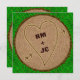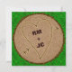This beautiful, romantic rustic nature wedding invitation design is perfect if you're looking for an old-fashioned country feel. The round invitations have a wood texture look, like the top view of a tree stump, complete with rings, a bark border and surrounding green grass. A heart with arrow has been carved into the front, and you can use the template to easily add the bride and groom's initials with a "+" between them.