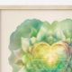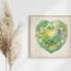 Rendered in soothing aqua, emerald, and golden hues, this painting is shaped into the iconic heart form. Vibrant leaves and delicate petals surround a radiant golden core, representing the illuminating energy of the heart chakra. Each element is awash in soft textures, the watercolor medium lending an ethereal, tranquil quality.
