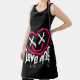 heart character with dead eyes and smile sprayed apron