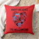 Heart cute Christmas doodle red black monogram Cushion