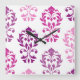 Heart Damask Art I Pinks Plums White Square Wall Clock