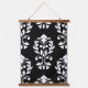 Heart Damask Lg Ptn II White on Black Hanging Tapestry