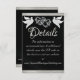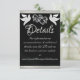This romantic design features an elegant black background with ribbon borders, linked hearts & doves with details for more information on the front and QR code and monogram placeholder on the back. Available in several colours for your wedding theme. (Ribbon is simulated in the artwork). Designed to coordinate with the "Two Shall Become One - Silver & Gold" Wedding Collection. To change details, click «Personalise». To move the text or change the text size, font, or colour click «Click to customise further»