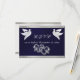 Design features linked hearts and doves on a black background with ribbon borders, stylish script place holders for the date on the front, and response information on a white pearl back. Perfect for the simple to most elegant wedding. Available in several colours for your wedding theme. (Ribbon is simulated in the artwork). Designed to coordinate with the "Two Shall Become One - Silver & Gold" Wedding Collection. To change details, click «Personalise». To move the text or change the text size, font, or colour click «Click to customise further»