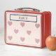 This is a standard metal lunchbox that appears to work just fine. We designed this box ourselves with an uploaded photo and custom text on the front and back. It looks absolutely beautiful except the front of the lunchbox is not centered like it shows in the photo. The print borders don't align with the inset flat part of the box where the preview photo online showed it perfectly centered in there. The back looks nice and centered though.
