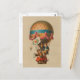 Vintage image from mid to late 1800s of two children ascending in a hot air balloon carrying a heart flag.