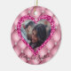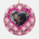 Heart Frame Custom Photo Pink Cushion & Diamonds Ceramic Tree Decoration