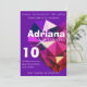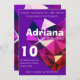 Birthday Invitation with a big heart shaped gemstone on purple background