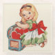 A cute retro style from the 1950s, this little girl is opening up her box full of hearts. From a vintage valentines card.