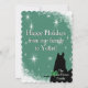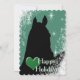A green starry background design with the black silhouette of a horse and a green heart. Customise with your personal holiday greeting, message and signature. The perfect holiday card for your horse lover!