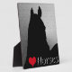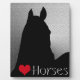 A silhouette of a horse's head on a silver metallic background with a red/black heart and the word "Horses". The perfect gift for your horse lover!