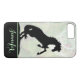 A green misty background with a smoky mist design with the black silhouette of a horse. Personalise with your name. Designed by Robin Cox.