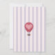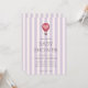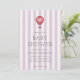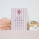Cute baby shower invitation featuring a pastel purple striped background paired with a hand-drawn hot air balloon and an elegant serif font in which your personalised information is written in. You can find more matching products from this collection in our store.