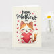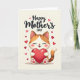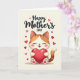 This card features a vertical layout with a cute, stylized young cat centered on a creamy background, drawn with soft rounded shapes that feel gentle and friendly ❤️. Its fur mixes creamy white with warm ginger-orange stripes, and it sits calmly as if pausing to share a quiet moment with someone special. The cat’s eyes are closed in an upward curve, with a tiny smile and rosy cheeks that suggest a tender, affectionate mood. In its paws, it cradles a large glossy red heart with a subtle shine, like a treasured gift being held close. Near the top, a flowing message appears in a dark ink tone, with small pink hearts scattered around it like little sparks of romance. The warm oranges, bright whites, and rich red stand out against the light background, while the gentle pink accents add a soft, friendly touch 🌼. Extra details include orange striping on the fluffy tail and small pink paw pads visible at the bottom.