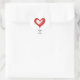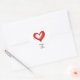 Sticker in heart shape with red heart, customise with your own text - for example: made with love, you are going to be grandparents, I love you, I give you my heart, Ann & Ben, name, etc.