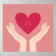 romantic design of a bright pink heart with the word love in the middle and two hands holding up the heart against a blush pink background. This beautiful girlish stylish design is perfect for valentine's day or any girl décor.