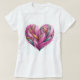 Showcases a heart-shaped design bursting with intricate, flowing strokes that resemble delicate feathers or swirling petals. The composition is a mesmerising fusion of warm pinks, deep reds, shimmering golds, and subtle hints of blue, creating a sense of movement and energy. Tiny droplets and fine details give the piece an ethereal, almost magical quality, as if the heart itself is alive-whispering emotions through its elegant, flowing lines.