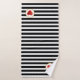 Elegant towel set with beautiful heart with black and white stripes on the background. Chic modern towel set.