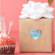 Heart palm trees on beach wedding stickers with customisable text
